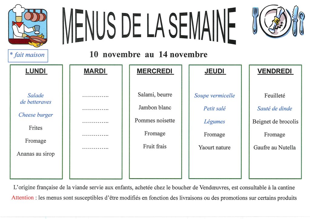 CANTINE MUNICIPALE: MENUS DE LA SEMAINE