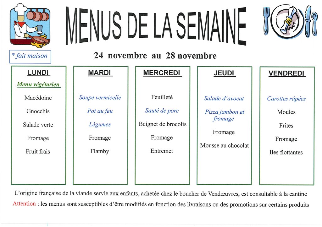 CANTINE MUNICIPALE: MENUS DE LA SEMAINE