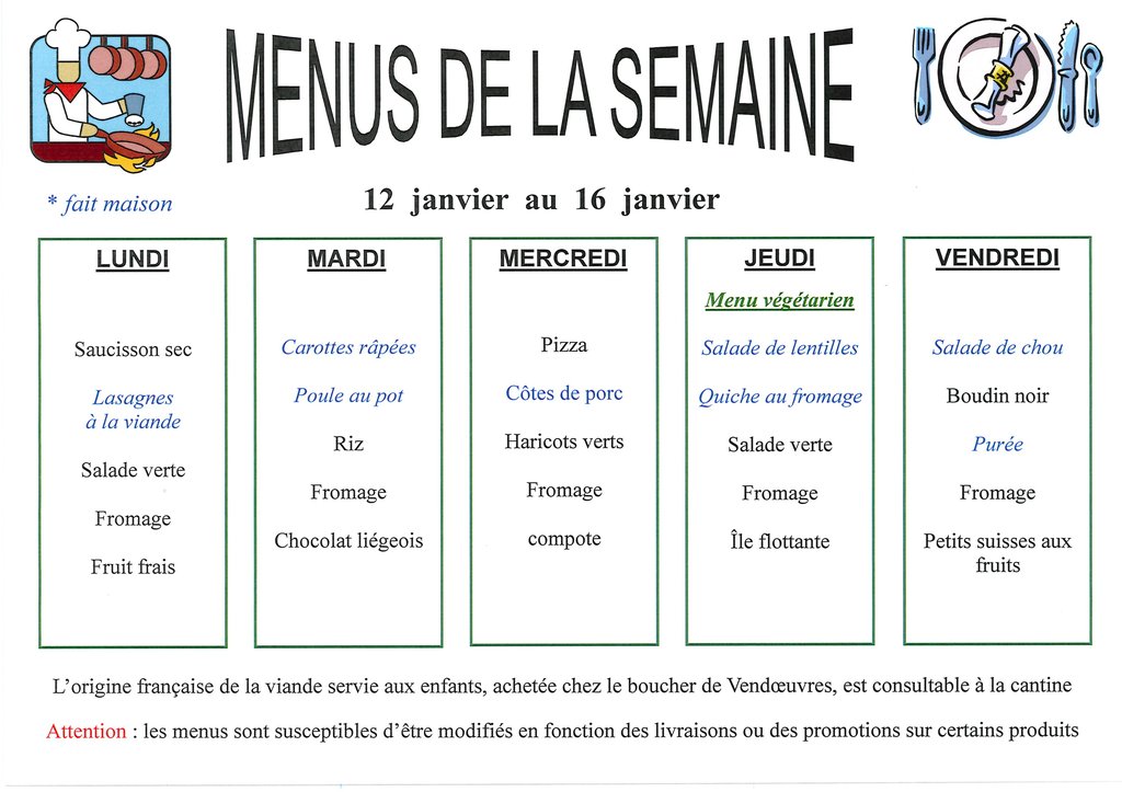 CANTINE MUNICIPALE : MENUS DE LA SEMAINE