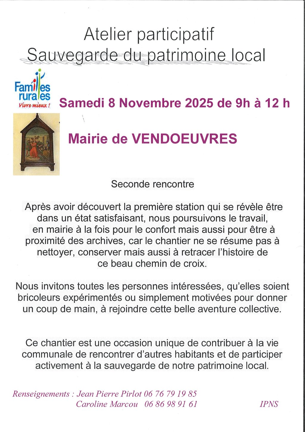 Familles Rurales, avec le soutien de la municipalité, vous invite à participer à un atelier de restauration du patrimoine communal.